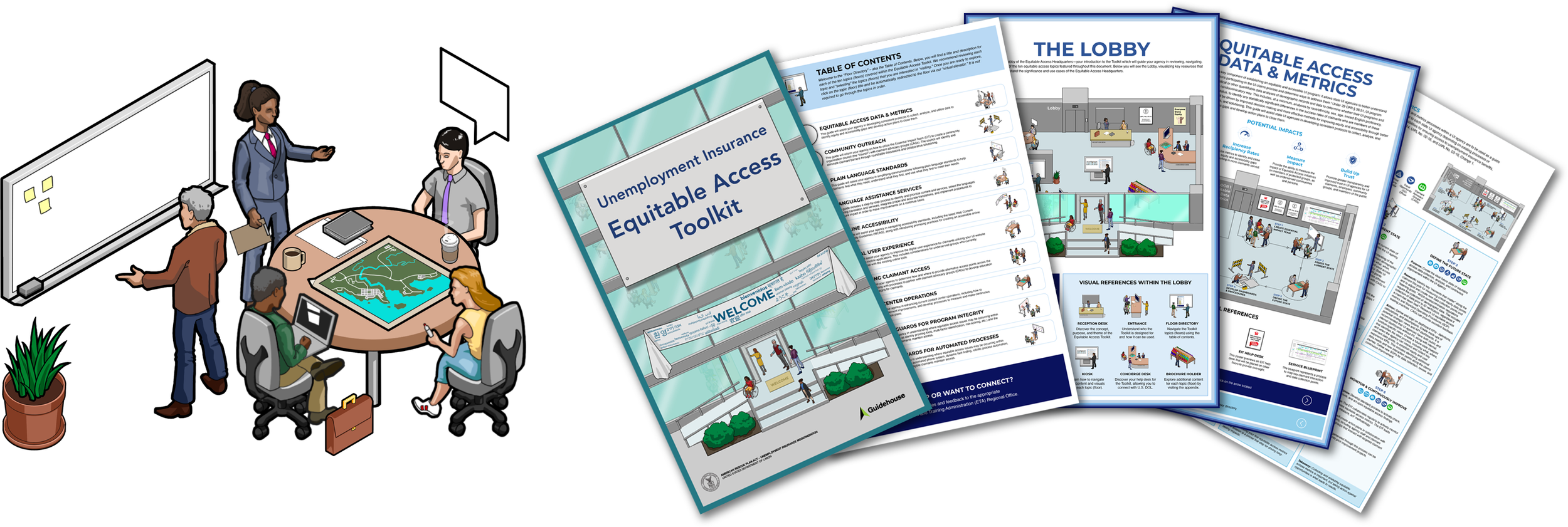 Illustration for the US Department of Labor’s Unemployment Insurance Equitable Access Toolkit